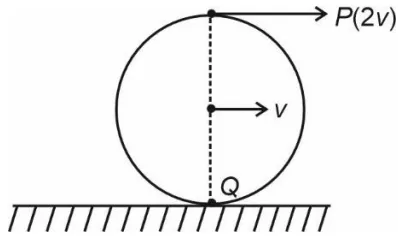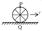 A wheel of a bullock cart is rolling on a level road as shown in the figure below. If its linear speed is v in the direction shown, which one of the following options is correct (P and Q are any highest and lowest points on the wheel, respectively)?
